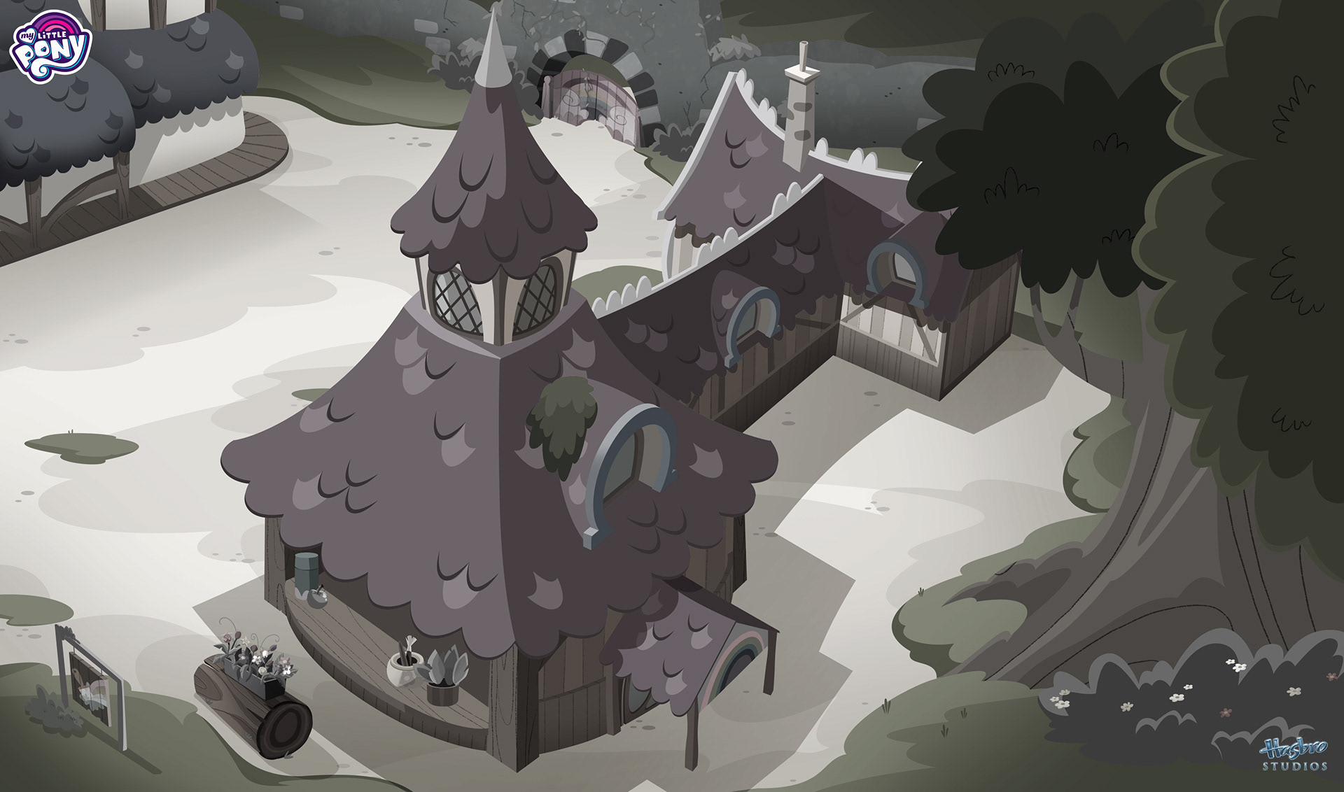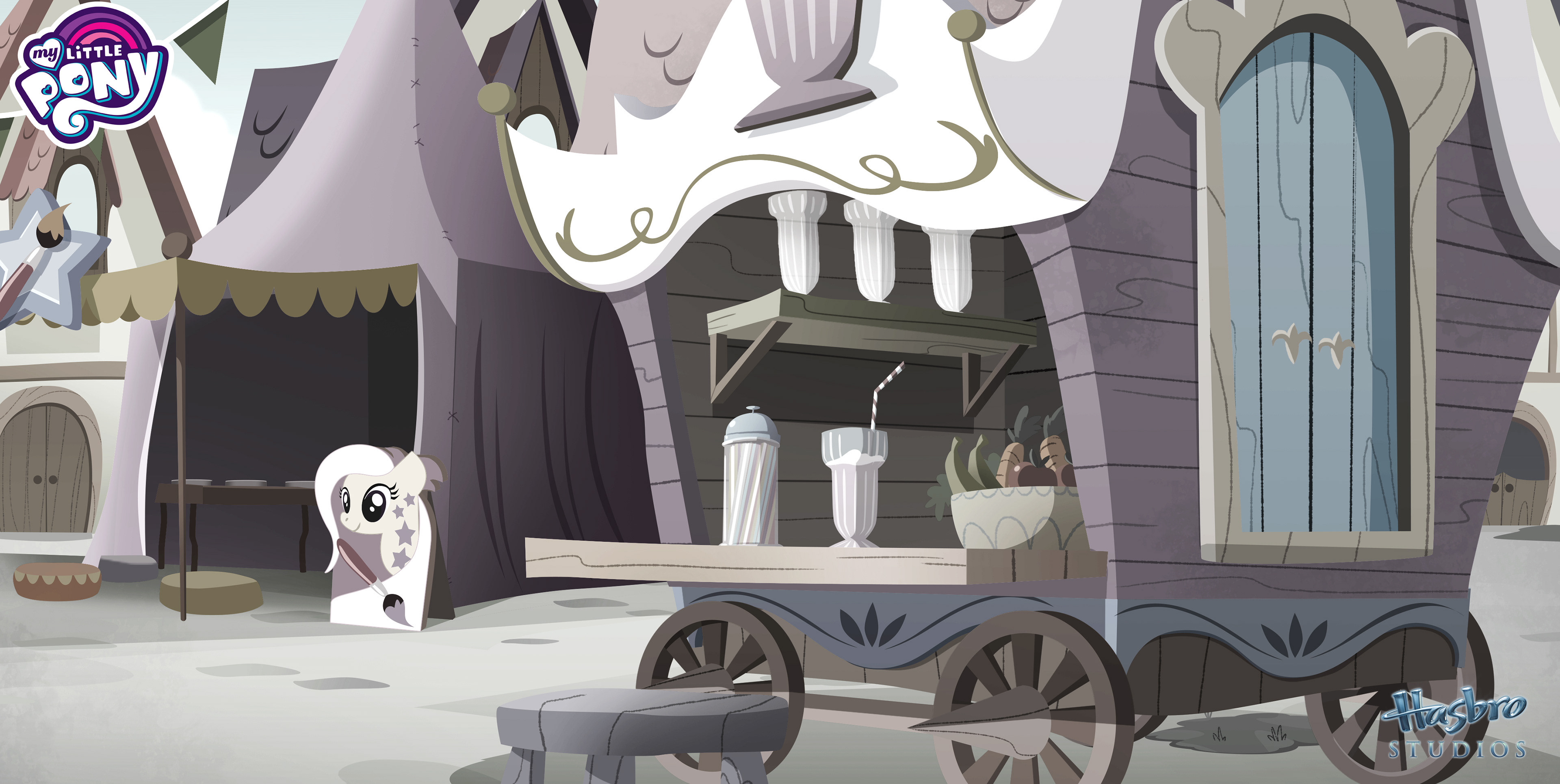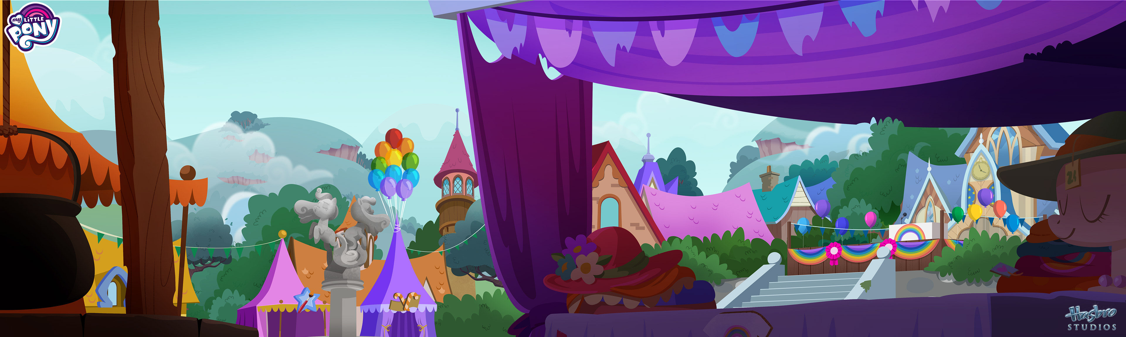 A collection of background art from My Little Pony: Rainbow Roadtrip